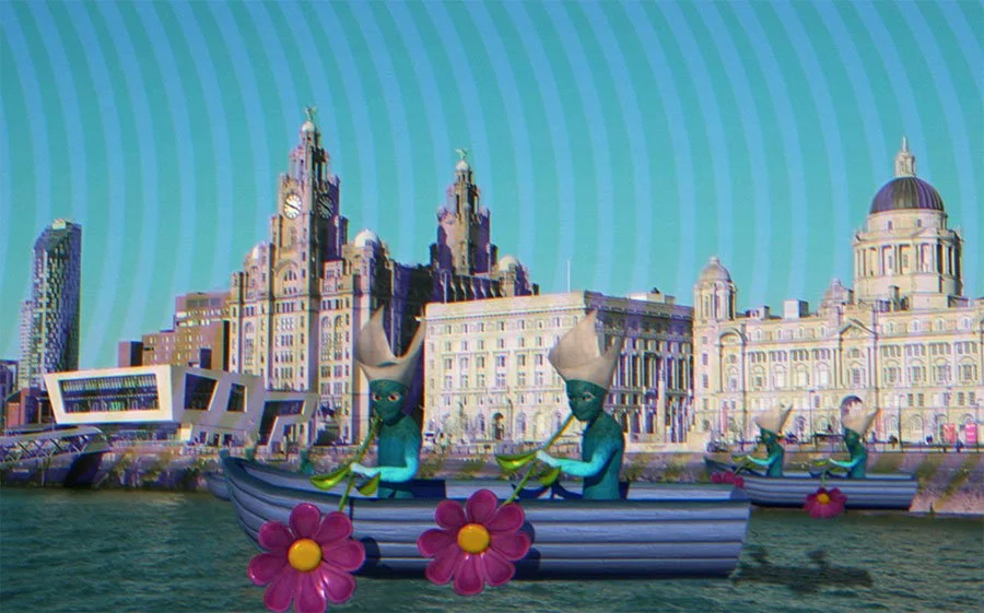 The Blue Violet River by speculative future artist Anita Fontaine is an Augmented Reality boat tour commissioned by AND (Abandon Normal Devices) festival and first exhibited in the UK in June 2021. The Liverpool skyline playfully shape shifts via custom-built AR viewfinders on the decks of the Mersey Ferry revealing a surreal future fairytale.